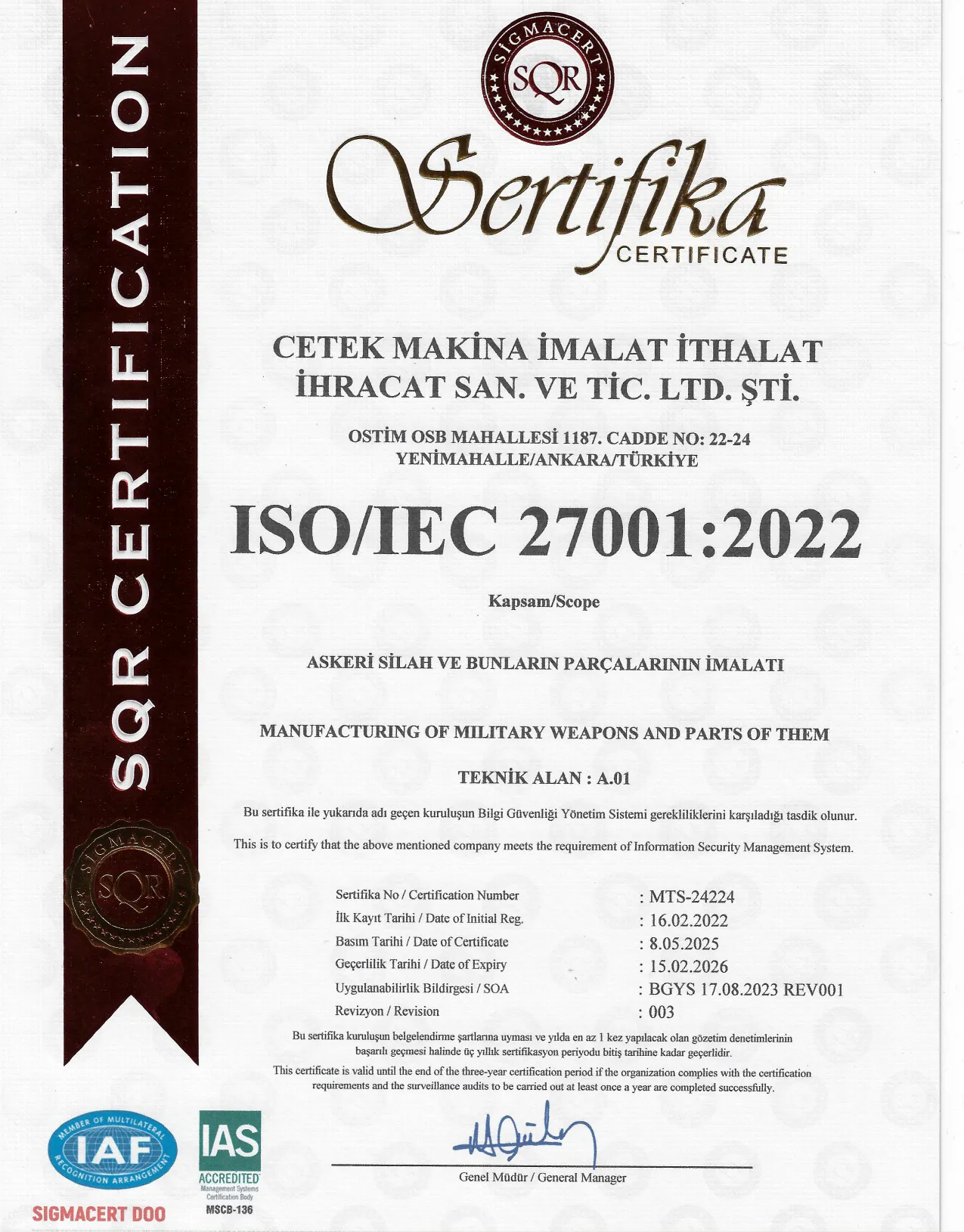 +90 312 385 26 21 - 22 , +90 312 385 56 02(Fax)